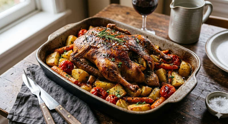 - Numa panela (de pedra, de ferro ou de barro), colocar o pato, cobri-lo com o cozido feito com a batata e a cenoura e deixar ferver.